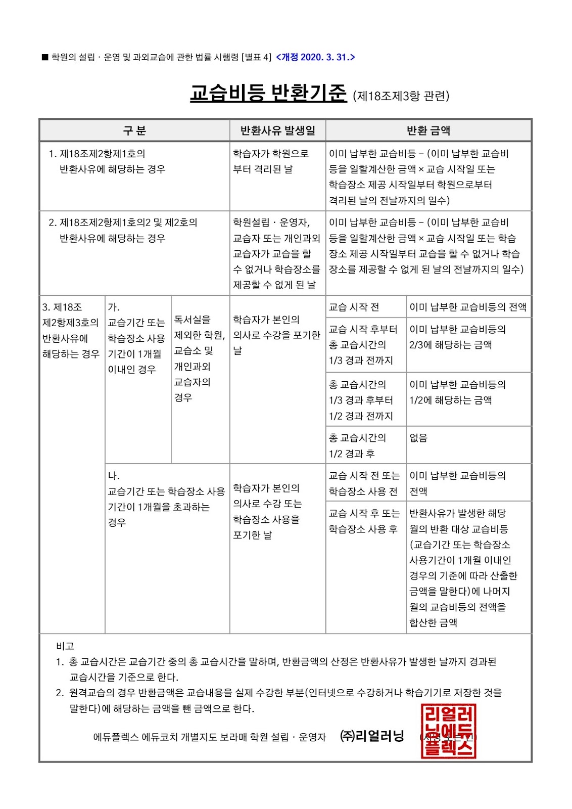[ 수강료 반환 기준 ]